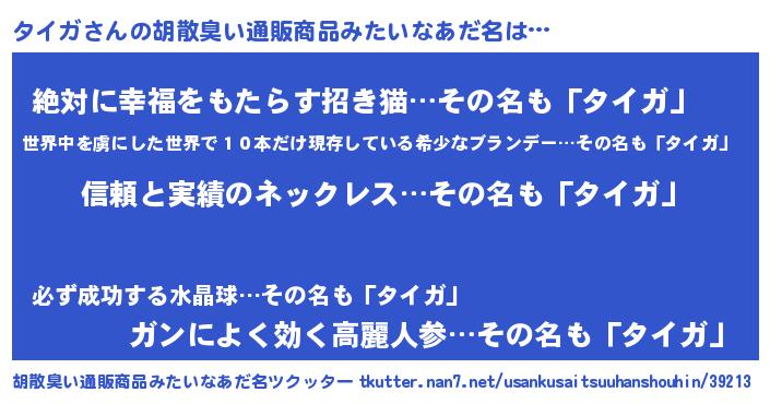 | ヘコむあだ名 | 『タイ太郎』『タイガ(笑)』 |