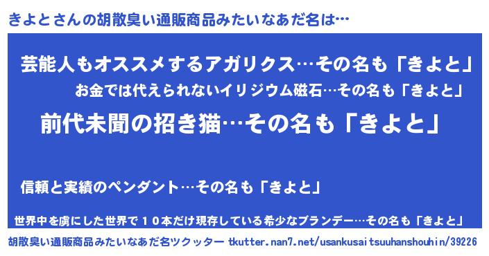 | 意味不明あだ名 | 『永久保存きよと』『つくし科きよと属』 |