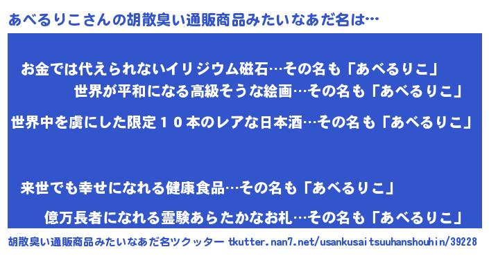 | ヒーロー風カッコイイあだ名 | 『仮面アベダー』『正義の使者あべるりこ』 |
