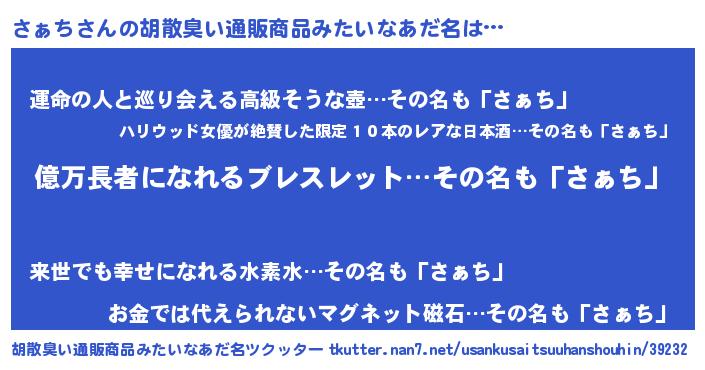 | 欧米人風あだ名 | 『アンジェラ・さぁち』『マイケルさぁち』 |