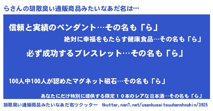 | ヘコむあだ名 | 『らふぇ~』『らぷりん』『ら(苦笑)』 |