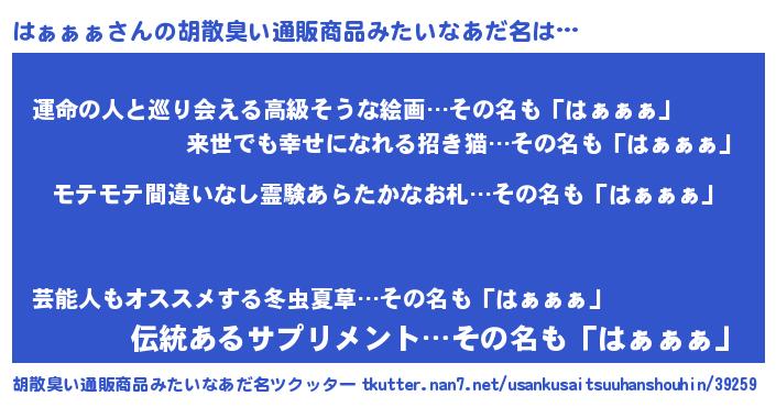 | ヒーロー風カッコイイあだ名 | 『スーパーハァァァ』『魔戒騎士ハァ』 |
