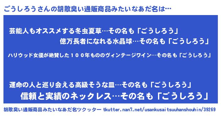 | 男性向けラノベタイトル風あだ名 | 『ゴウシロウスレイヤー』 |