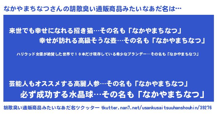 | 肩書あだ名 | 『なかやまちなつプロデューサー』 |