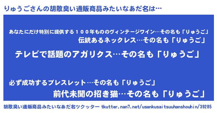 | ヘコむあだ名 | 『りゅうご(苦笑)』『りゅっちょ』 |