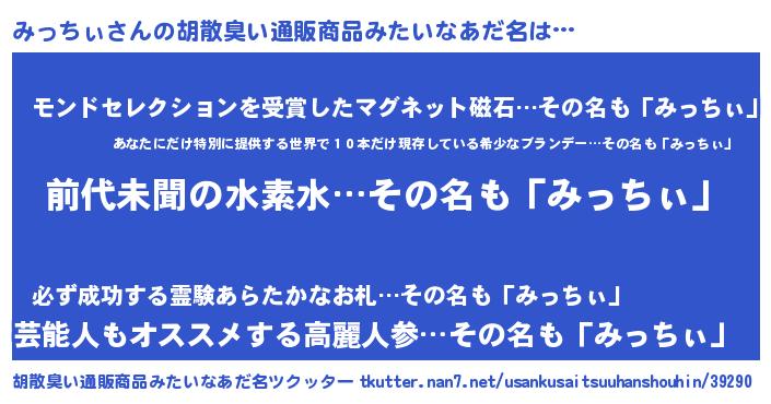 | 意味不明あだ名 | 『永久保存みっちぃ』『自称みっちぃ』 |