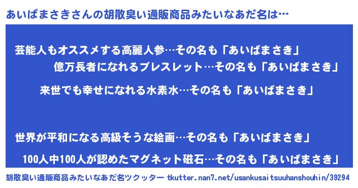 | 意味不明あだ名 | 『永久保存あいばまさき』 |