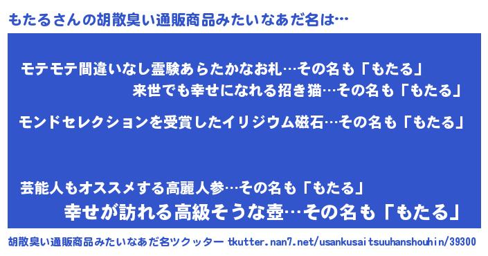 | ヘコむあだ名 | 『もたふぇ~』『豆乳』『もたを』 |