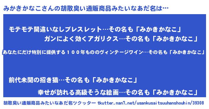 | 意味不明あだ名 | 『住所不定無職みかきかなこ(7歳)』 |