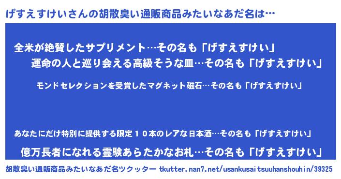 | ヒーロー風カッコイイあだ名 | 『慈愛の使者げすえすけい』 |
