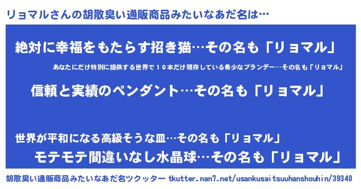 | 意味不明あだ名 | 『とにかく怪しいリョマル』 |