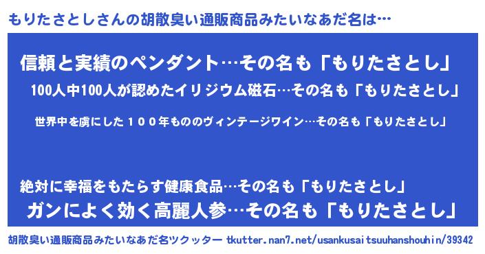 | ヘコむあだ名 | 『もりを』『もりたさとし(震え声)』 |