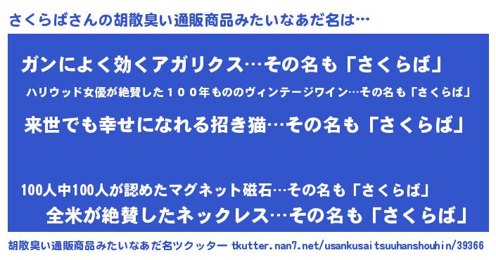 | ヘコむあだ名 | 『さくらば(小並感)』『さくぷりん』 |