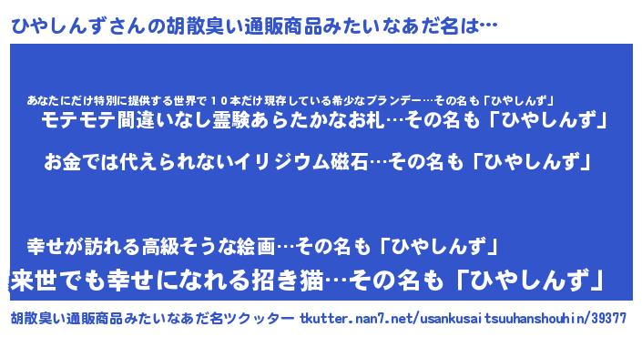 | ヘコむあだ名 | 『ひやしんず(苦笑)』『ひやもー』 |