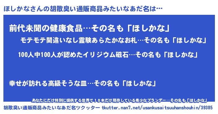 | ヘコむあだ名 | 『ほしかな(笑)』『ほしにゅー』 |