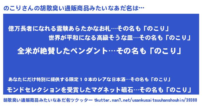 | 意味不明あだ名 | 『とにかく怪しいのこり』 |
