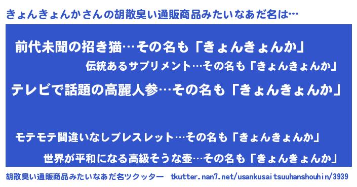 | 意味不明あだ名 | 『自称きょんきょんか』 |