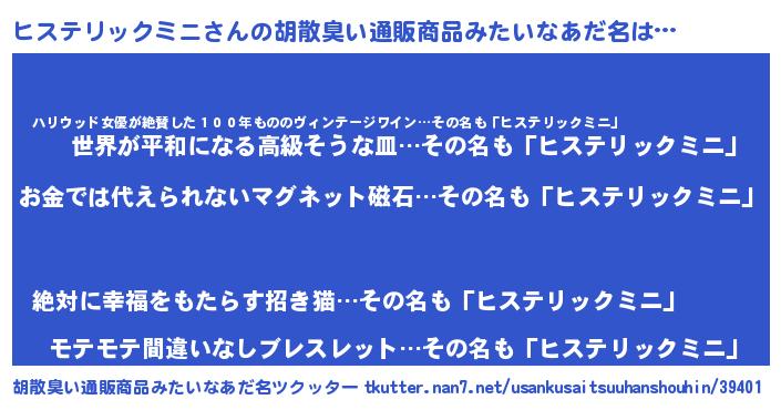 | ヒーロー風カッコイイあだ名 | 『愛の使者ヒステリックミニ』 |