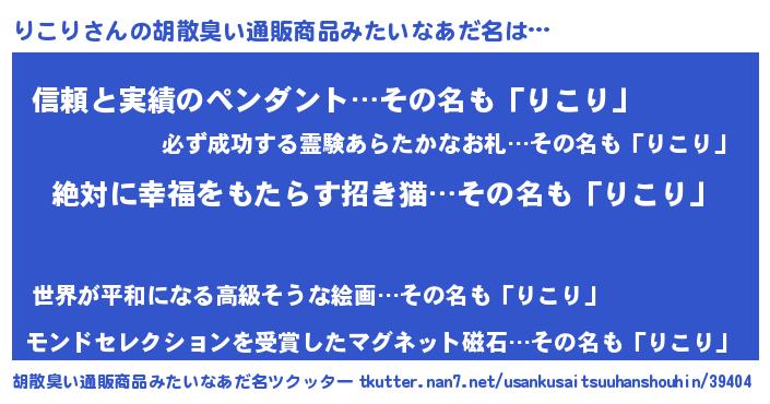 | 男性向けラノベタイトル風あだ名 | 『りこりという概念が存在しない退屈な世界 』 |