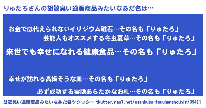 | 意味不明あだ名 | 『永久保存りゅたろ』『ペロリンりゅたろ』 |