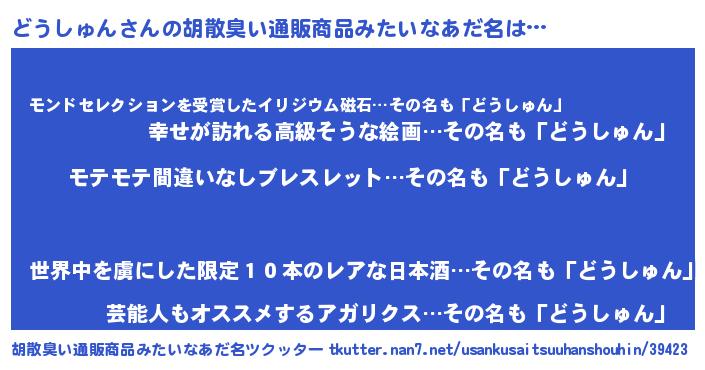 | 意味不明あだ名 | 『ペロリンどうしゅん』『自称どうしゅん』 |