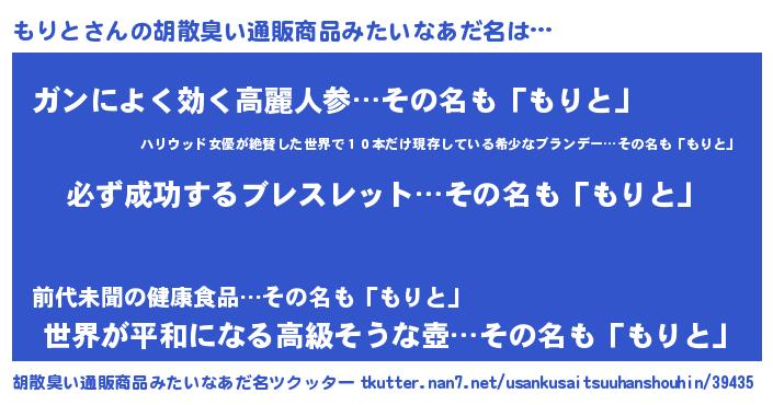 | 意味不明あだ名 | 『ペロリンもりと』『自称もりと』 |