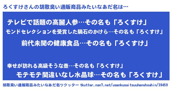 | 意味不明あだ名 | 『永久保存ろくすけ』『自称ろくすけ』 |