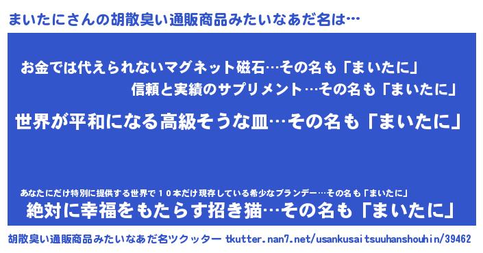 | ヒーロー風カッコイイあだ名 | 『ウルトラまいたにマン』『ネオマイタニ』 |