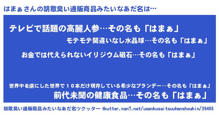 | ヒーロー風カッコイイあだ名 | 『愛の使者はまぁ』『サイバー戦士ハマァ』 |