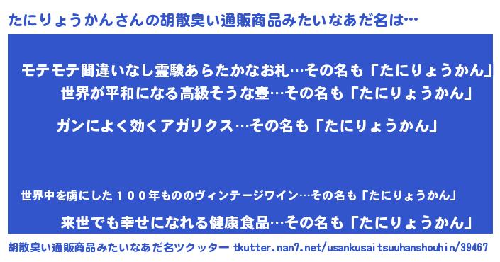 たにりょうかんさんの胡散臭い通販商品みたいなあだ名をツクッター!