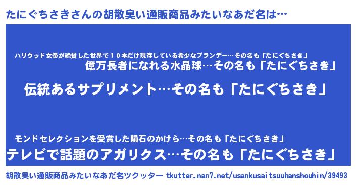 | 意味不明あだ名 | 『とにかく怪しいたにぐちさき』 |
