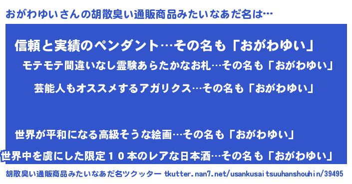 | 意味不明あだ名 | 『自称おがわゆい』『ペロリンおがわゆい』 |