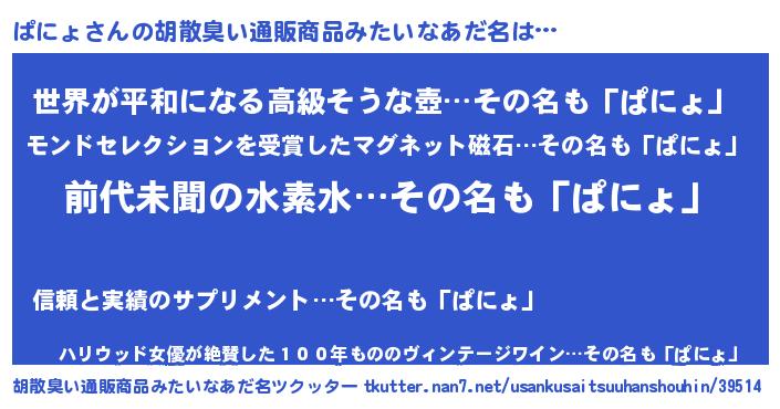 | 意味不明あだ名 | 『永久保存ぱにょ』『ぱにょフォーエバー』 |