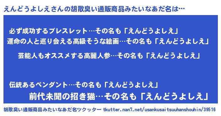 | ヘコむあだ名 | 『えんにー』『えんどうよしえ(笑)』 |