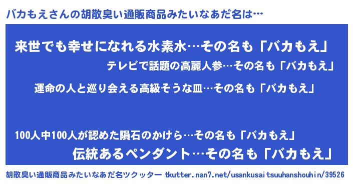 | 意味不明あだ名 | 『バカもえフォーエバー』『自称バカもえ』 |