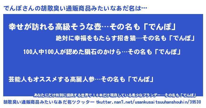 | 意味不明あだ名 | 『眠気覚ましガムでんぽ味』『自称でんぽ』 |