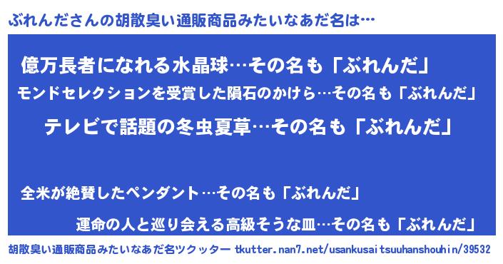 | 意味不明あだ名 | 『自称ぶれんだ』『ニラ科ぶれんだ属』 |