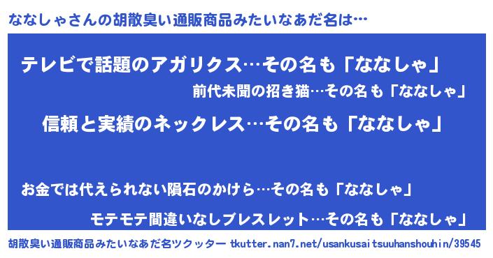 | ピコ太郎風あだ名 | 『ナナ四郎』『ナコ史郎』『ピコナ郎』 |