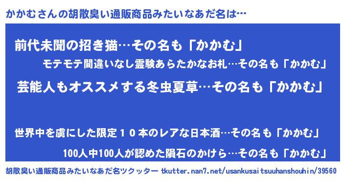 かかむさんの胡散臭い通販商品みたいなあだ名をツクッター!
