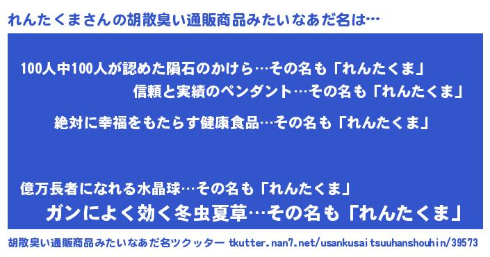 | 男性向けラノベタイトル風あだ名 | 『れんたくまという概念が存在しない退屈な世界 』 |