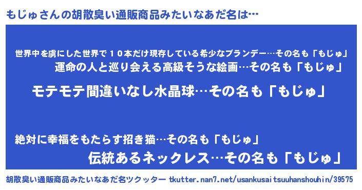 | 男性向けラノベタイトル風あだ名 | 『転生したらもじゅだった件』 |