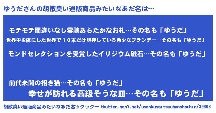 | ヘコむあだ名 | 『ゆうにゅー』『牛乳』『ゆうぷりん』 |