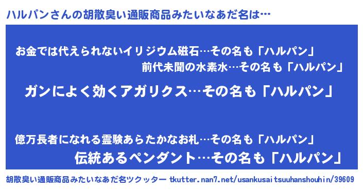 | 意味不明あだ名 | 『自称ハルパン』『エリンギ科ハルパン属』 |
