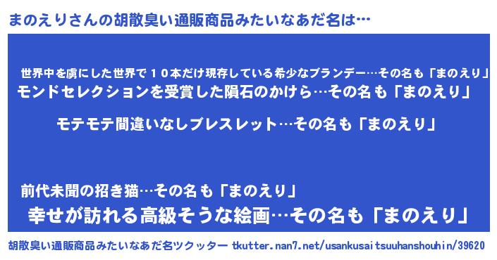 | 男性向けラノベタイトル風あだ名 | 『転生したらまのえりだった件』 |