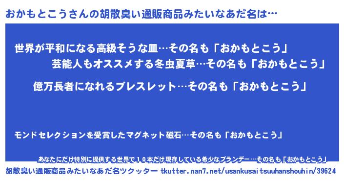 | 男性向けラノベタイトル風あだ名 | 『うちのおかもとこうが世界を掌握している!』 |