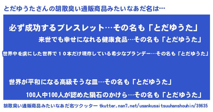 | ヘコむあだ名 | 『とだもー』『とだゆうた(小並感)』 |