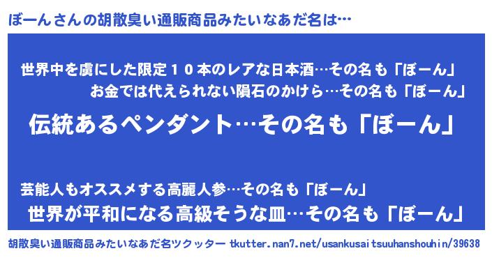 | 意味不明あだ名 | 『とにかく怪しいぼーん』 |