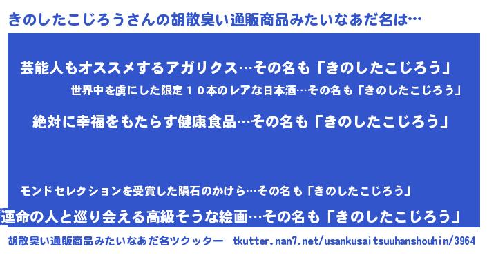 | 男性向けラノベタイトル風あだ名 | 『キノシタコジロウスレイヤー』 |