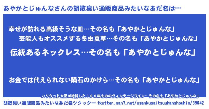 | 男性向けラノベタイトル風あだ名 | 『ダンジョンにあやかとじゅんなを求めるのは間違っているだろうか』 |
