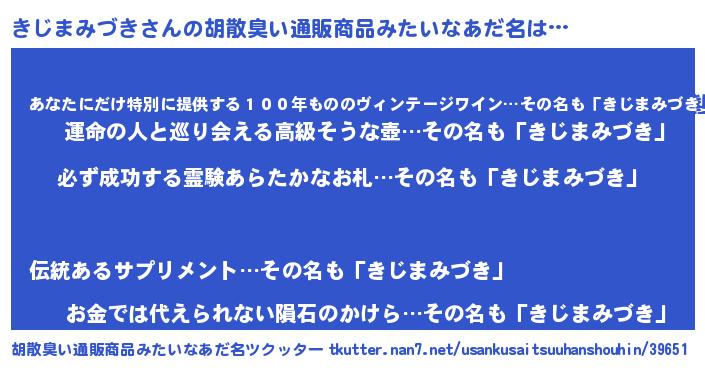 | 伝説のあだ名 | 『伝説のスナイパーきじまみづき』 |